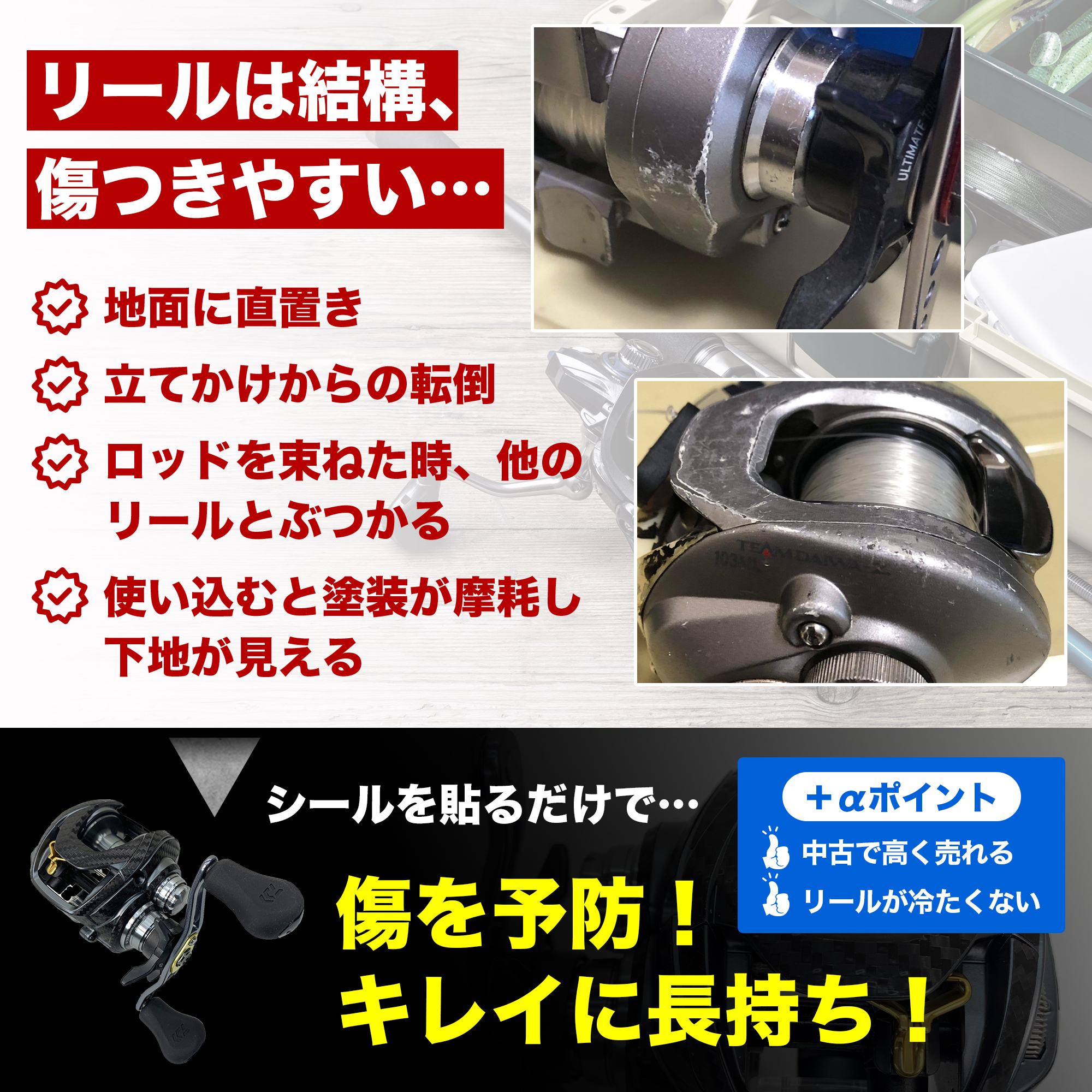 新品のリールに傷が入るのを防止すればリセールの際に価値が下がりません。