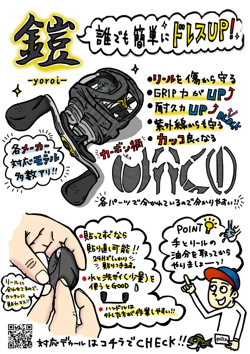 リールの傷を防止しながら見た目もドレスアップ出来るリール用デカール 鎧YOROI